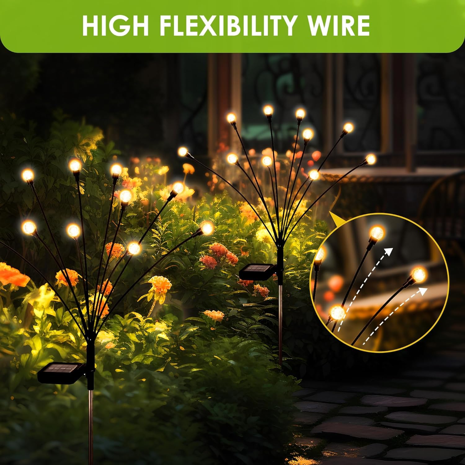 • [EASY INSTALLATION] Unlike other electricity lights, the installation of Solar Lights for Garden does not require a switch or even cables. Simply connect the light to the stake after turning on the switch and push it down into the soil. No worries of tangled cables that make a mess and there will not be electric shock.